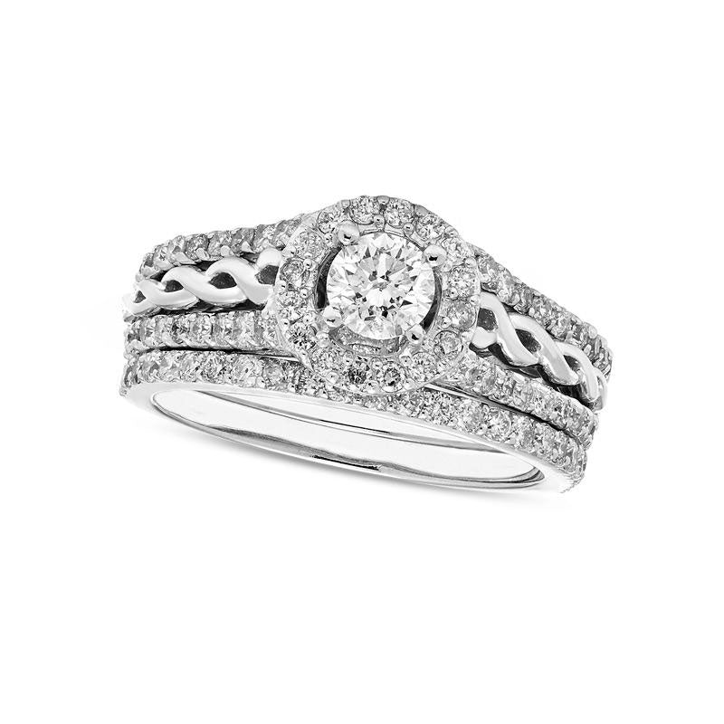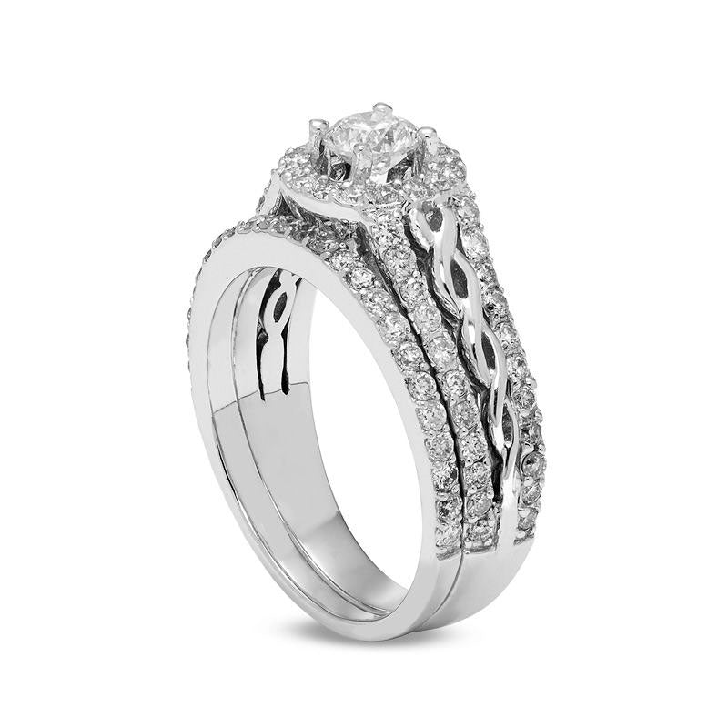 1.0 CT. T.W. Certified Natural Diamond Frame Braided Shank Bridal Engagement Ring Set in Solid 14K White Gold (I/I2)