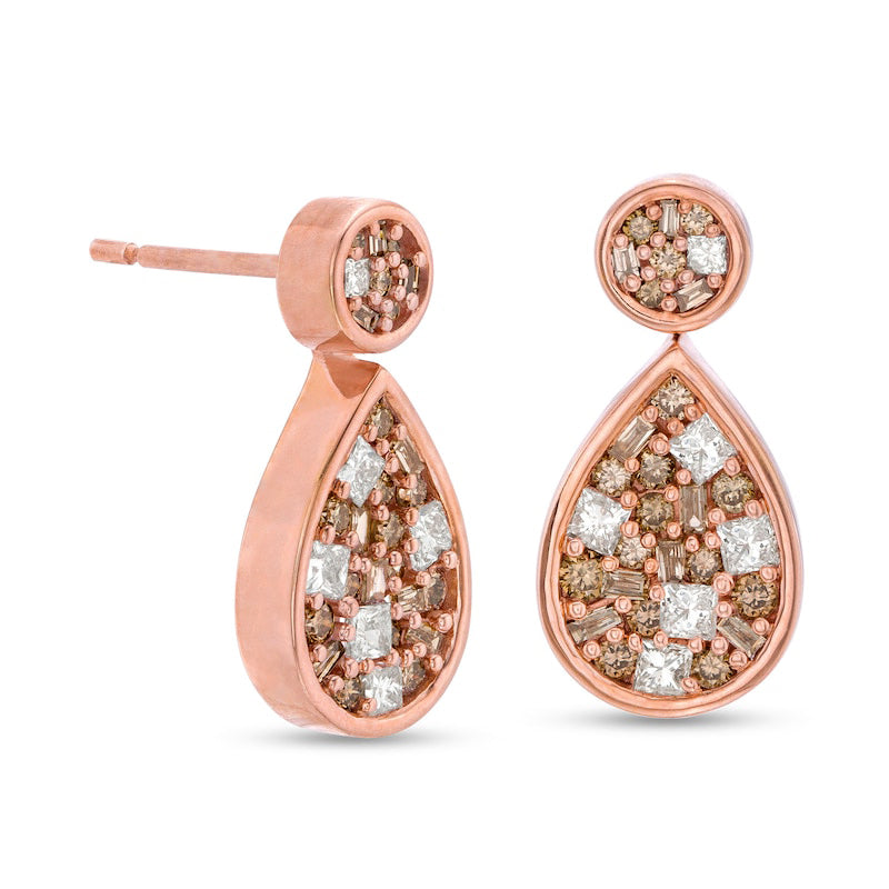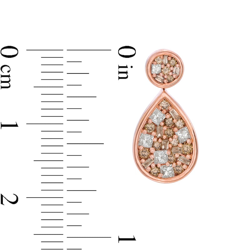 1 CT. T.W. Champagne and White Composite Diamond Teardrop Earrings in 10K Rose Gold