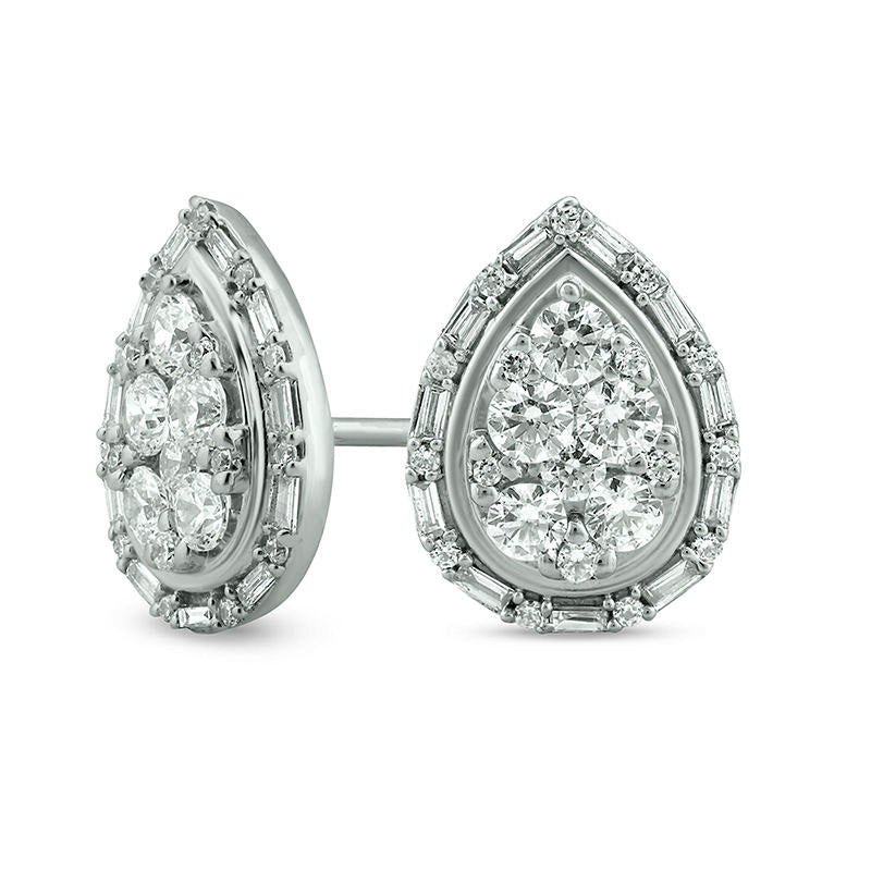 1 CT. T.W. Composite Diamond Art Deco Teardrop Frame Stud Earrings in 10K White Gold