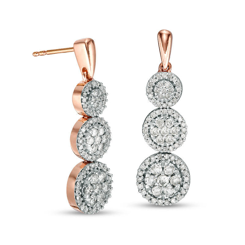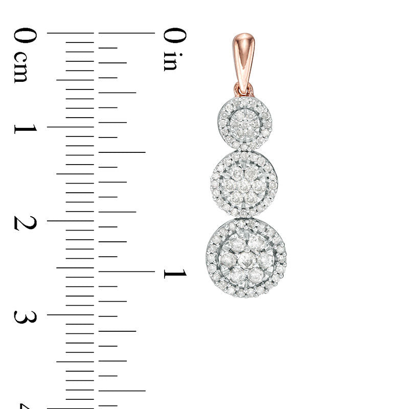 1 CT. T.W. Composite Diamond Frame Three-Stone Drop Earrings in 10K Rose Gold