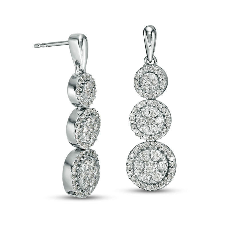 1 CT. T.W. Composite Diamond Frame Three-Stone Drop Earrings in 10K White Gold
