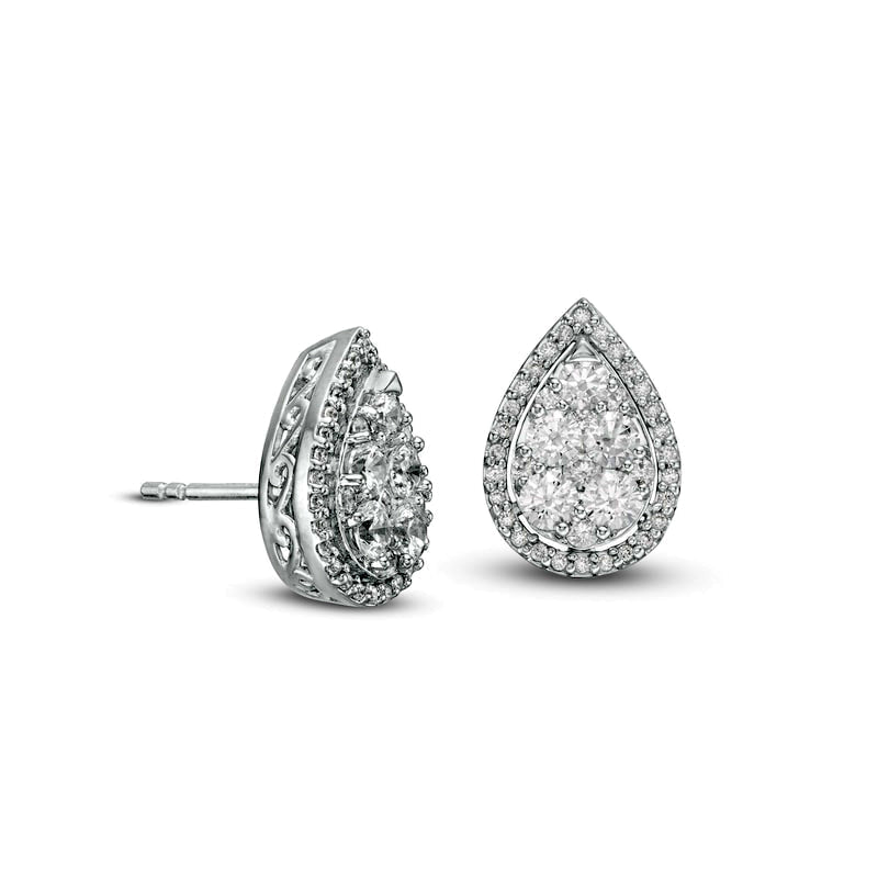 1 CT. T.W. Composite Diamond Teardrop Frame Stud Earrings in 14K White Gold