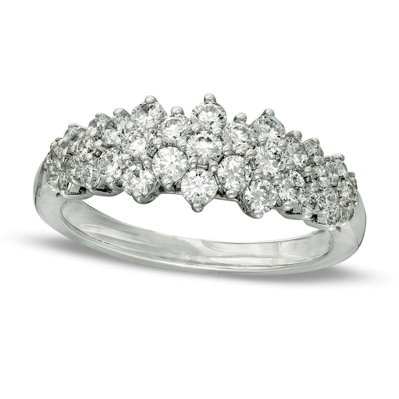 Celebrate your special day with this stunning 1 CT. T.W. Composite Diamond Anniversary Band. Crafted in 14K white gold, this sweet and charming ring features a layer of flower-shaped diamond composites, with the largest 1/20 ct. center stones. With a total weight of 1 carat, this band is sure to captivate, and is finished with a polished shine. It's the perfect way to mark your first or fiftieth anniversary.