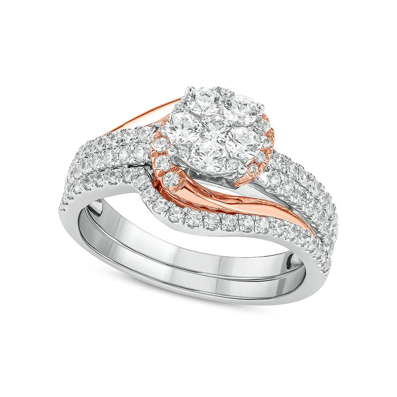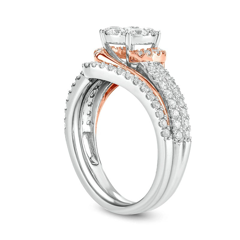1.0 CT. T.W. Composite Natural Diamond Bypass Bridal Engagement Ring Set in Solid 10K Two-Tone Gold