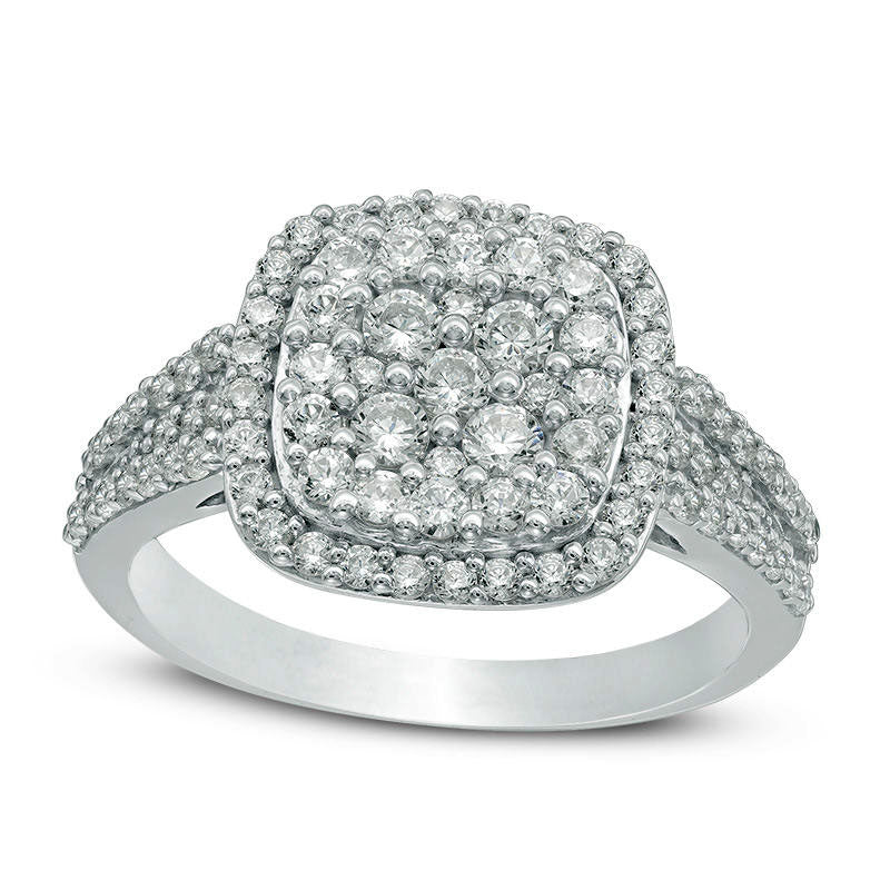 1.0 CT. T.W. Composite Natural Diamond Cushion Frame Engagement Ring in Solid 10K White Gold