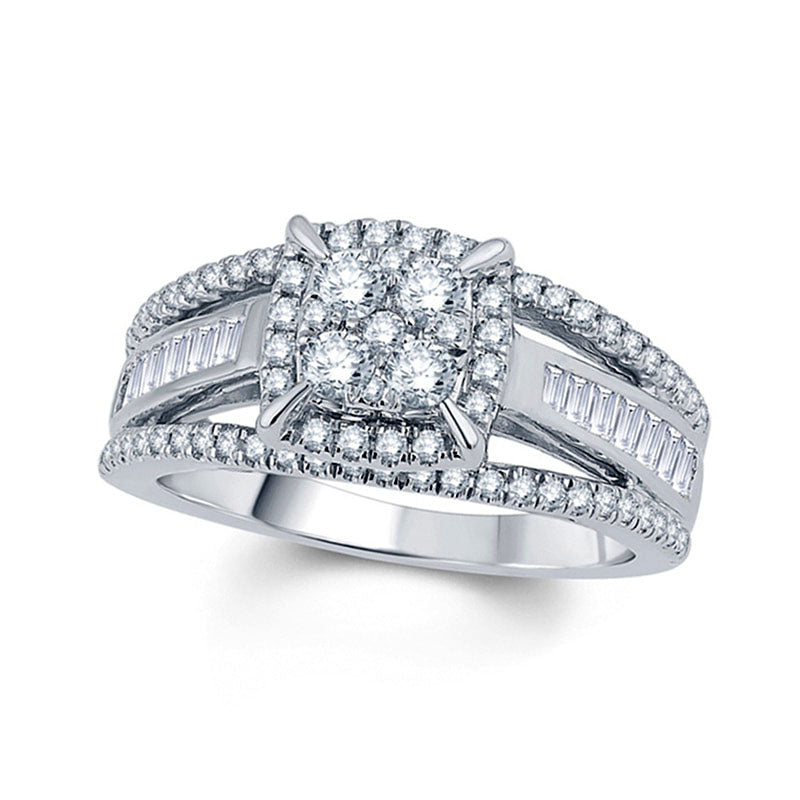 1.0 CT. T.W. Composite Natural Diamond Cushion Frame Split Shank Engagement Ring in Solid 10K White Gold