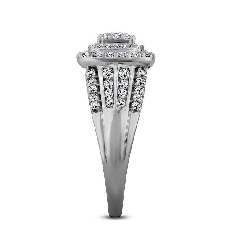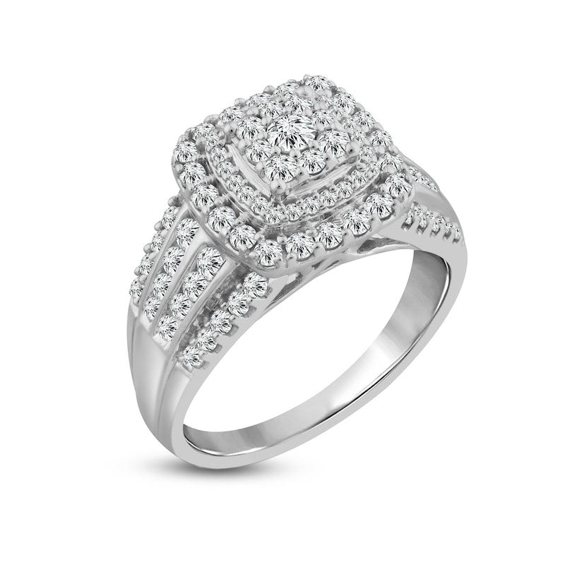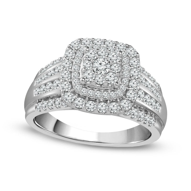 1.0 CT. T.W. Composite Natural Diamond Double Cushion Frame Multi-Row Engagement Ring in Solid 10K White Gold