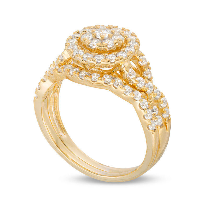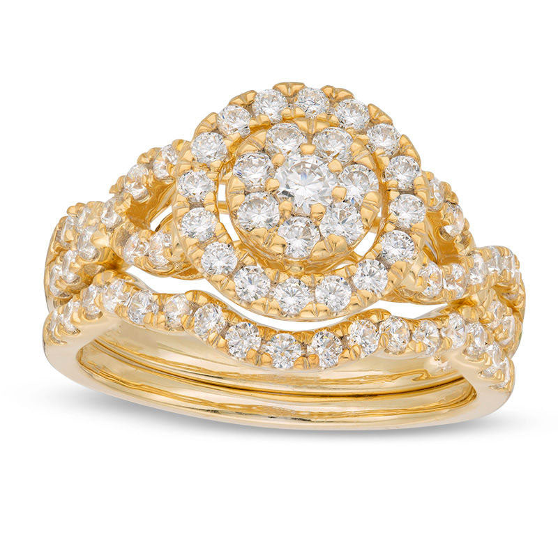 1.0 CT. T.W. Composite Natural Diamond Frame Bridal Engagement Ring Set in Solid 10K Yellow Gold