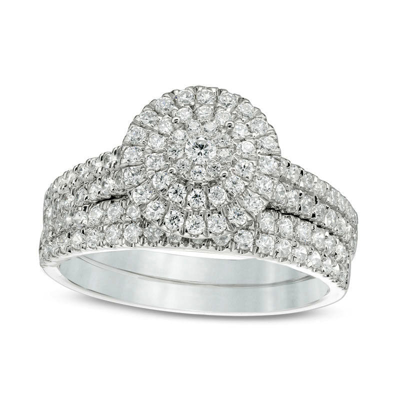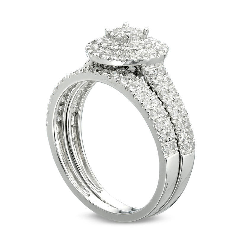 1.0 CT. T.W. Composite Natural Diamond Multi-Row Bridal Engagement Ring Set in Solid 14K White Gold