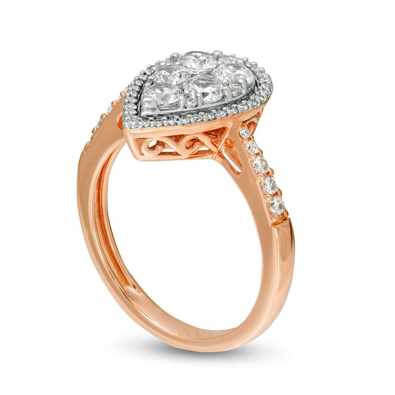 This beautiful diamond engagement ring is a perfect expression of your love. It is made of 10K rose gold and features a stunning pear-shaped composite of diamonds, surrounded by a...