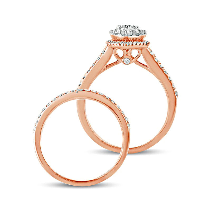 1.0 CT. T.W. Composite Pear Natural Diamond Frame Bridal Engagement Ring Set in Solid 10K Rose Gold