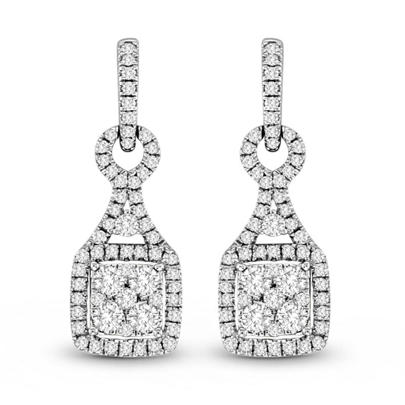 1 CT. T.W. Diamond Cluster Square Doorknocker Drop Earrings in 18K White Gold (G/SI2)