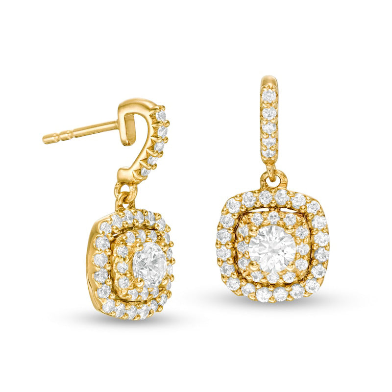 1 CT. T.W. Diamond Double Cushion Frame Drop Earrings in 14K Gold