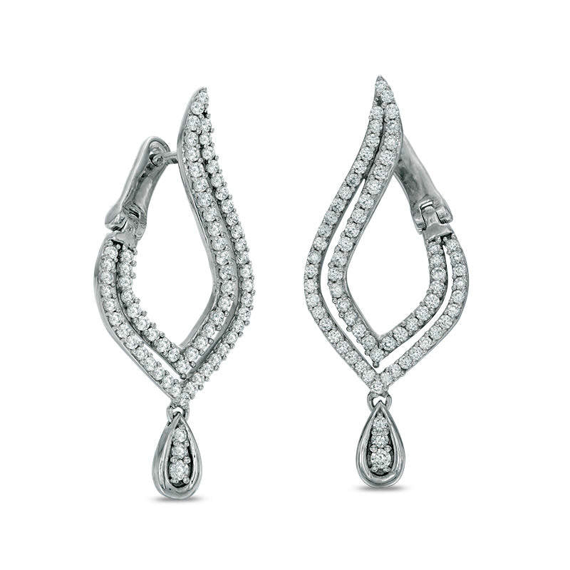 1 CT. T.W. Diamond Flame Drop Earrings in 10K White Gold