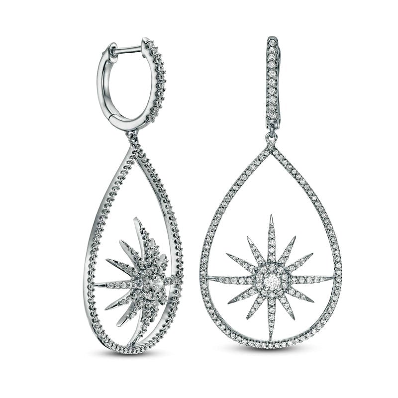 1 CT. T.W. Diamond Starburst Drop Earrings in 14K White Gold