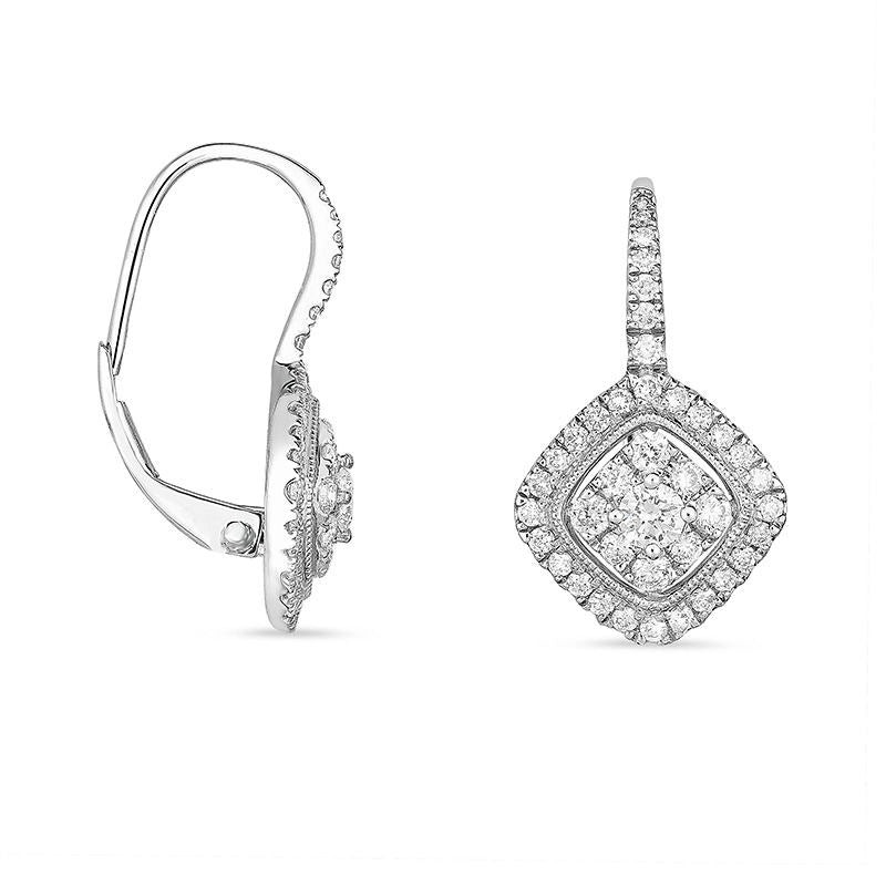 1 CT. T.W. Diamond Tilted Cushion Frame Vintage-Style Drop Earrings in 14K White Gold