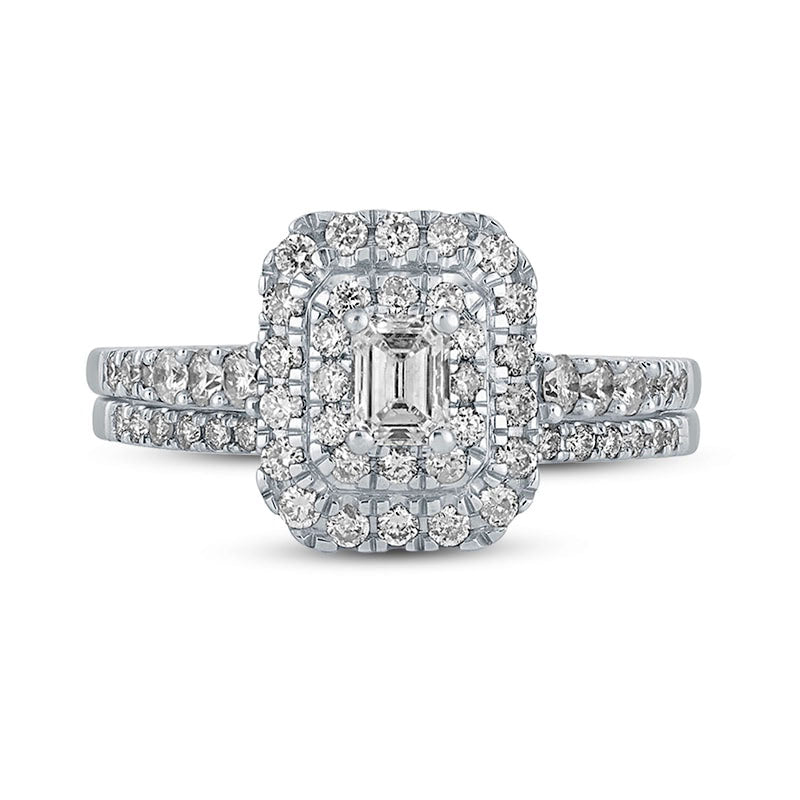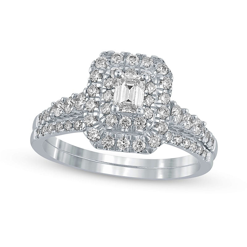 1.0 CT. T.W. Emerald-Cut Natural Diamond Frame Bridal Engagement Ring Set in Solid 10K White Gold