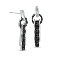 1 CT. T.W. Enhanced Black and White Diamond Vertical Row Drop Earrings in Sterling Silver