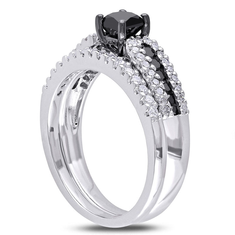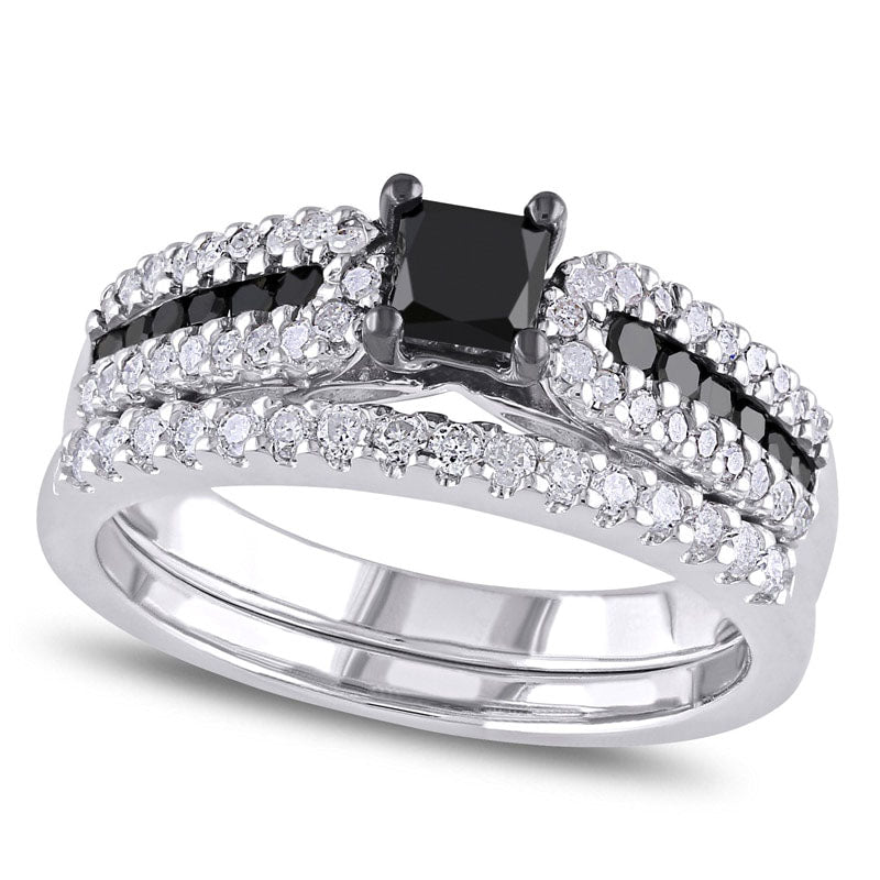 On the momentous occasion when you propose, dazzle her with this stunning bridal set featuring enhanced black and white diamonds! Impeccably fashioned in lustrous sterling silver, the engagement ring showcases...