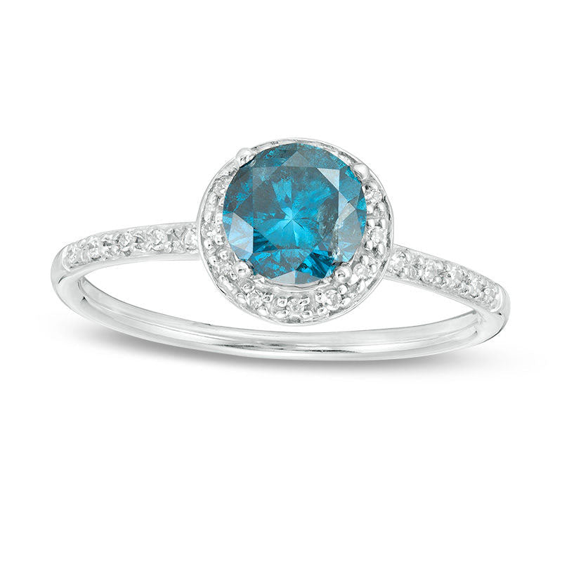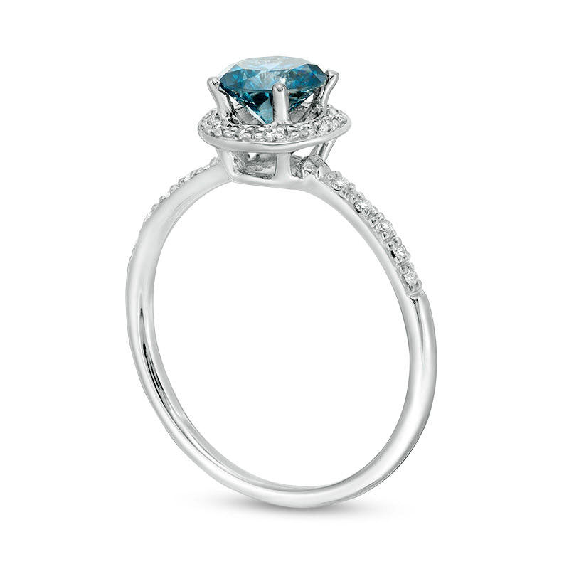 1.0 CT. T.W. Enhanced Blue and White Natural Diamond Frame Engagement Ring in Solid 14K White Gold