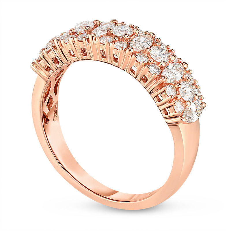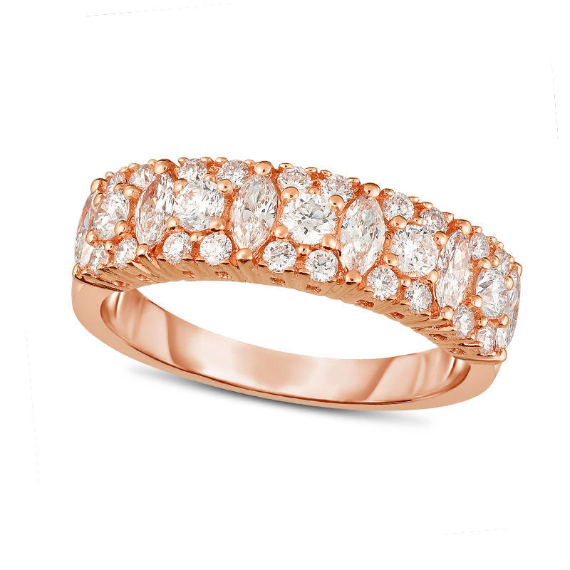 1.0 CT. T.W. Marquise and Round Natural Diamond Alternating Band in Solid 14K Rose Gold
