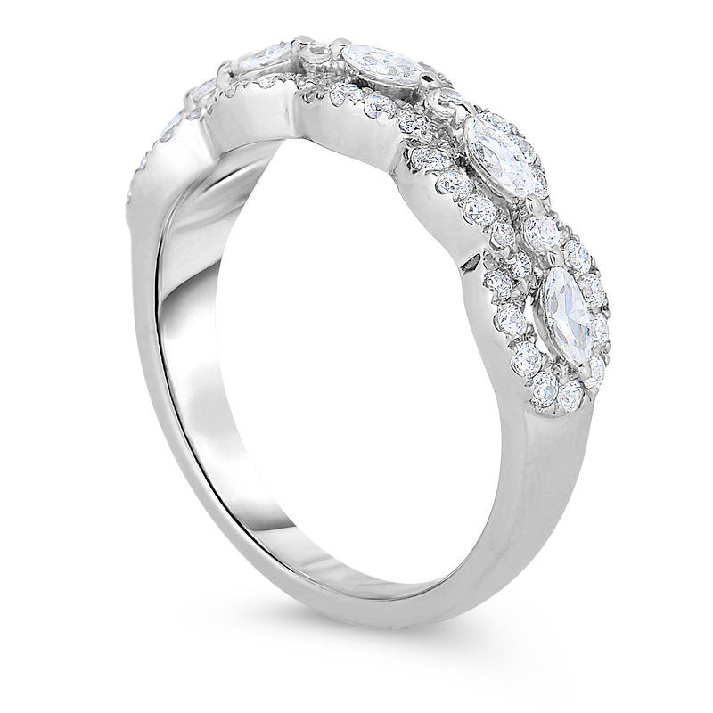Express your love with this stunning diamond band crafted in 14K white gold. The band features an alternating arrangement of five 1/15 ct. marquise-shaped diamonds and round diamonds, captured in...