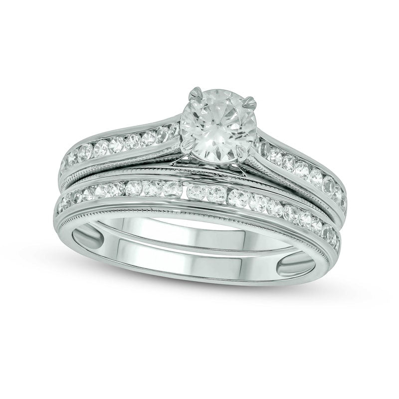 1.0 CT. T.W. Natural Diamond Antique Vintage-Style Bridal Engagement Ring Set in Solid 14K White Gold (I/I2)