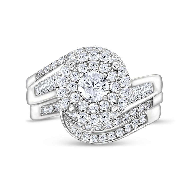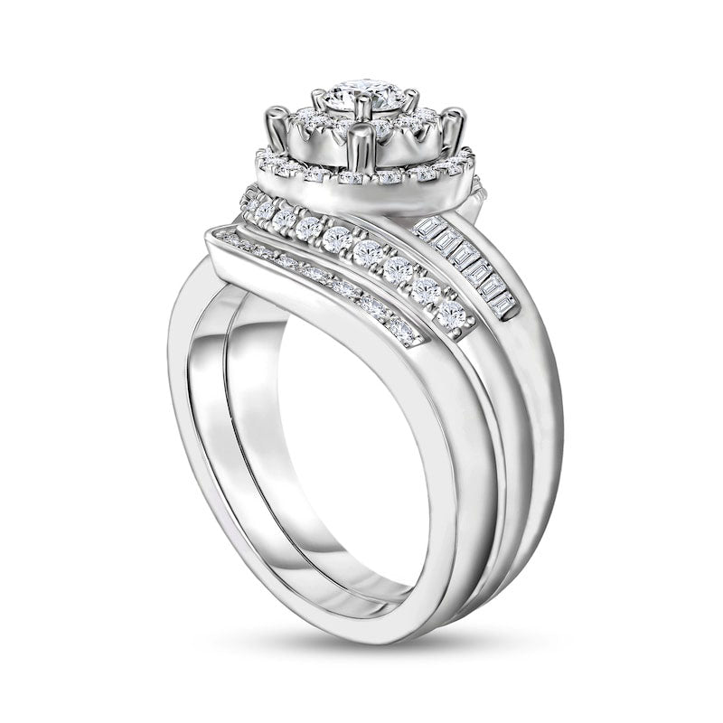 1.0 CT. T.W. Natural Diamond Bypass Double Frame Bridal Engagement Ring Set in Solid 14K White Gold
