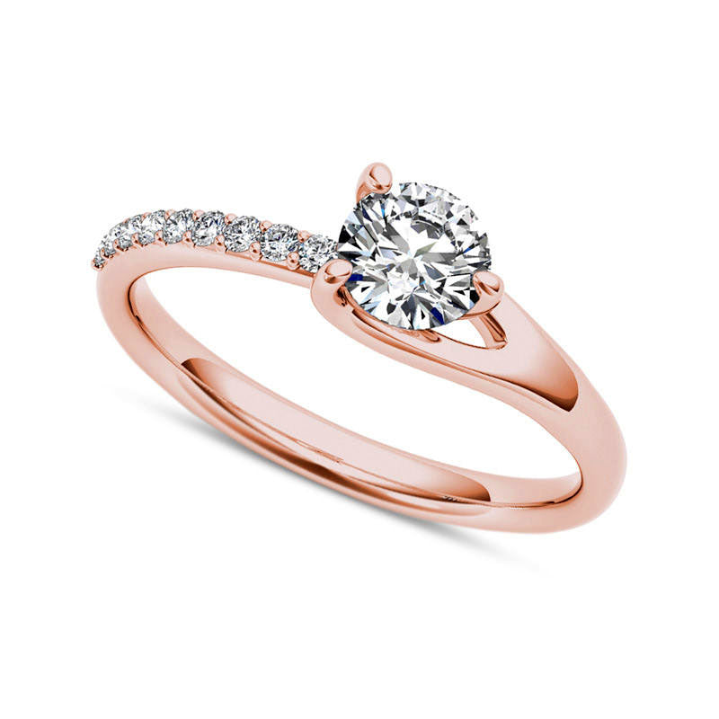 1.0 CT. T.W. Natural Diamond Bypass Engagement Ring in Solid 14K Rose Gold