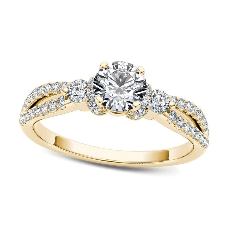 1.0 CT. T.W. Natural Diamond Collared Split Shank Engagement Ring in Solid 14K Gold