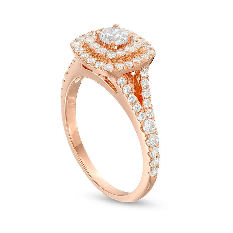 1.0 CT. T.W. Natural Diamond Double Cushion Frame Engagement Ring in Solid 10K Rose Gold