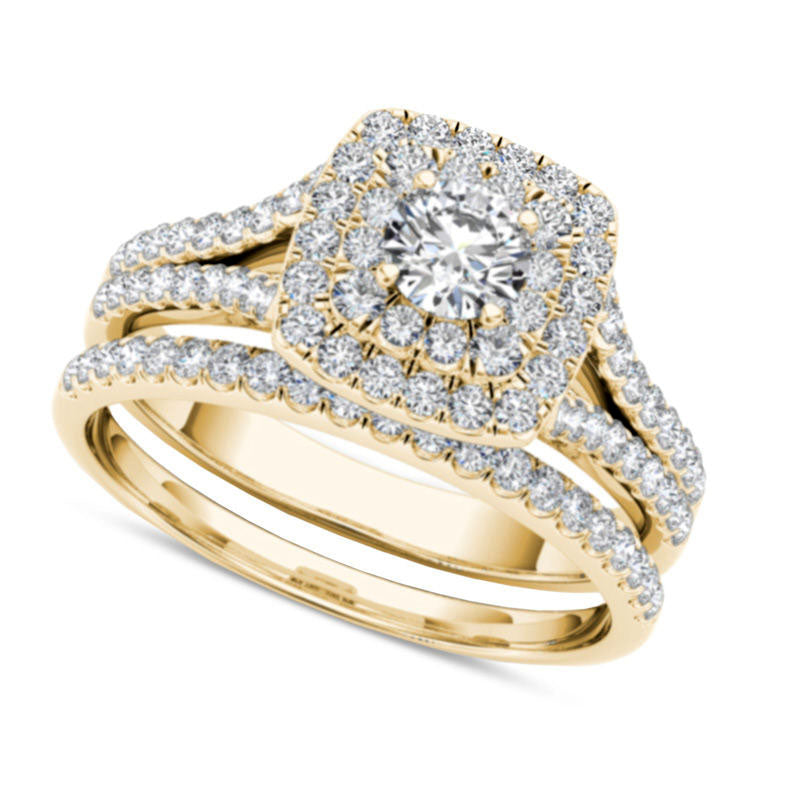 1.0 CT. T.W. Natural Diamond Double Cushion Frame Split Shank Bridal Engagement Ring Set in Solid 14K Gold
