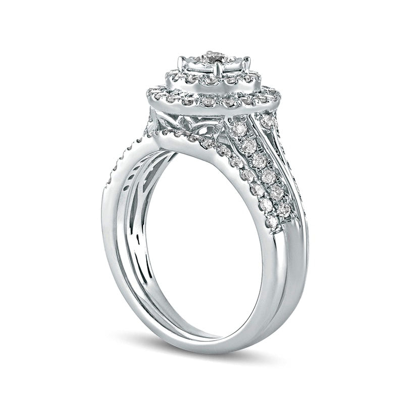 1.0 CT. T.W. Natural Diamond Double Frame Bridal Engagement Ring Set in Solid 10K White Gold
