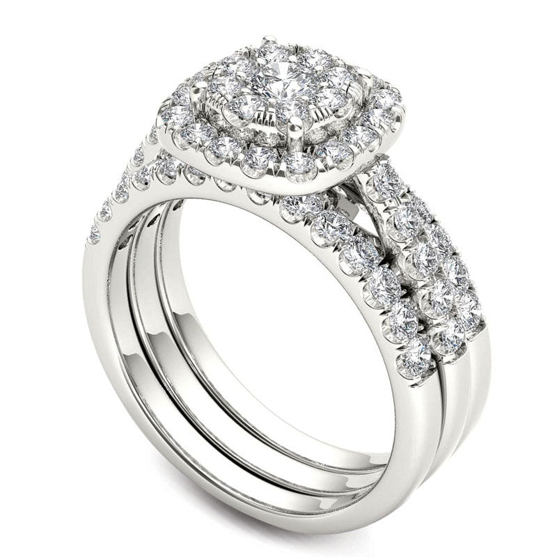 1.0 CT. T.W. Natural Diamond Double Frame Bridal Engagement Ring Set in Solid 14K White Gold