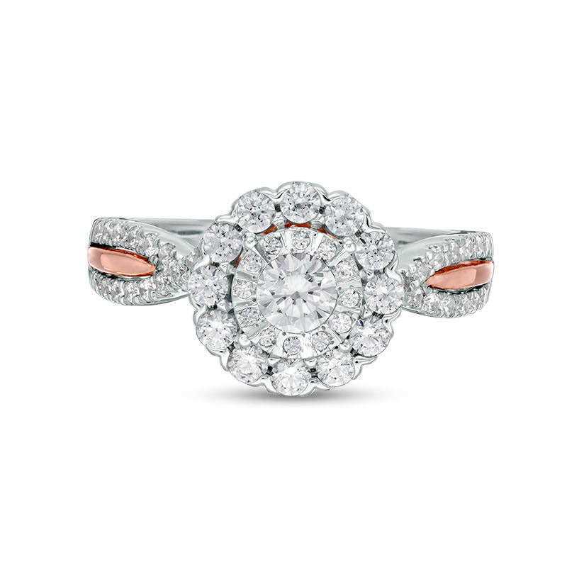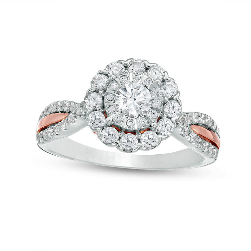 1.0 CT. T.W. Natural Diamond Double Frame Engagement Ring in Solid 14K Two-Tone Gold - Size 7