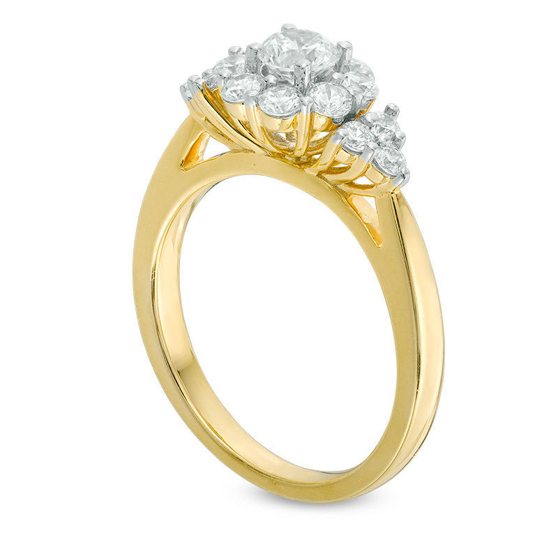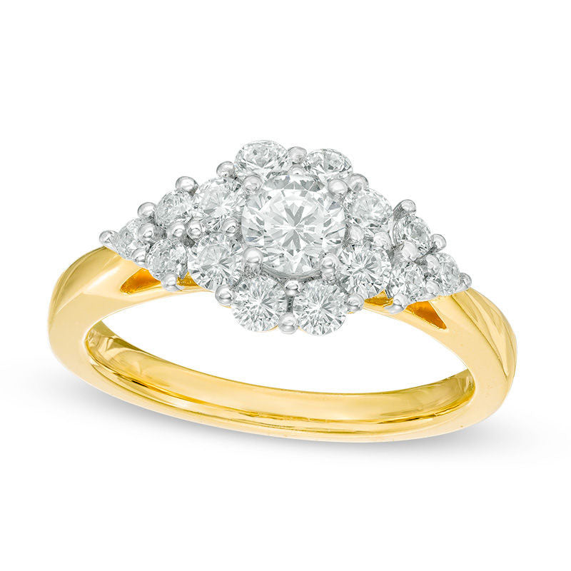 This breathtaking diamond engagement ring is the perfect symbol of your enduring love. Created in 14K gold, this stunning piece boasts a brilliant diamond flower composite with a lustrous 1/3 ct. diamond at the center. The composite is flanked by trios of smaller diamonds on each side, which add to its dazzling beauty. With a total weight of 1 ct. t.w. of diamonds and a polished finish, this spectacular engagement ring is a true statement piece that will make a lasting impression.