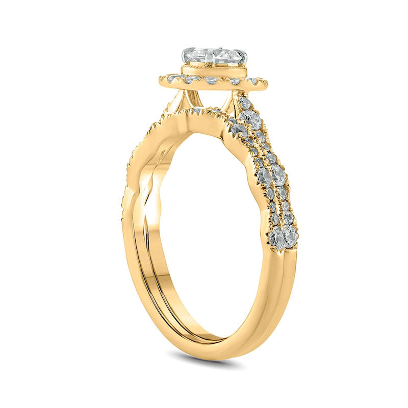 1.0 CT. T.W. Natural Diamond Frame Antique Vintage-Style Bridal Engagement Ring Set in Solid 10K Yellow Gold