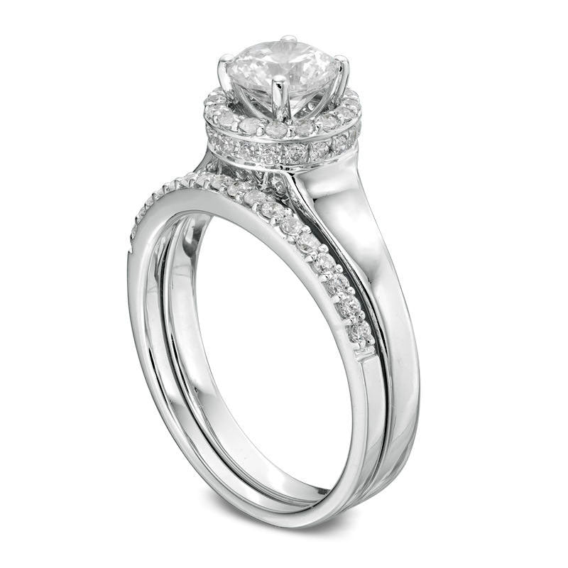 1.0 CT. T.W. Natural Diamond Frame Bridal Engagement Ring Set in Solid 14K White Gold