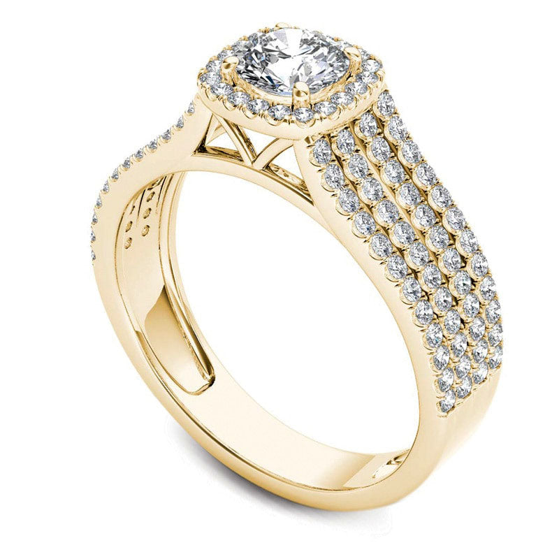 1.0 CT. T.W. Natural Diamond Frame Multi-Row Engagement Ring in Solid 14K Gold