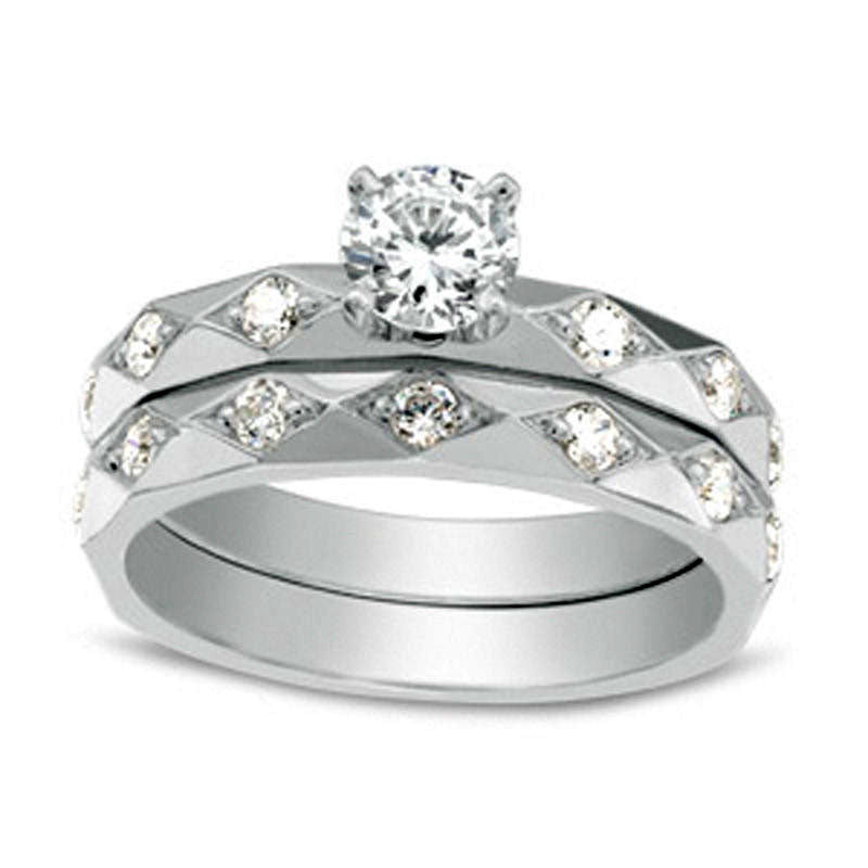 1.0 CT. T.W. Natural Diamond Quilted Bridal Engagement Ring Set in Solid 14K White Gold
