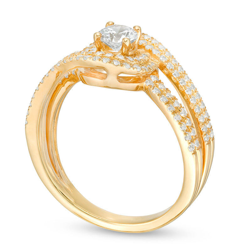 1.0 CT. T.W. Natural Diamond Swirl Bypass Frame Multi-Row Engagement Ring in Solid 14K Gold