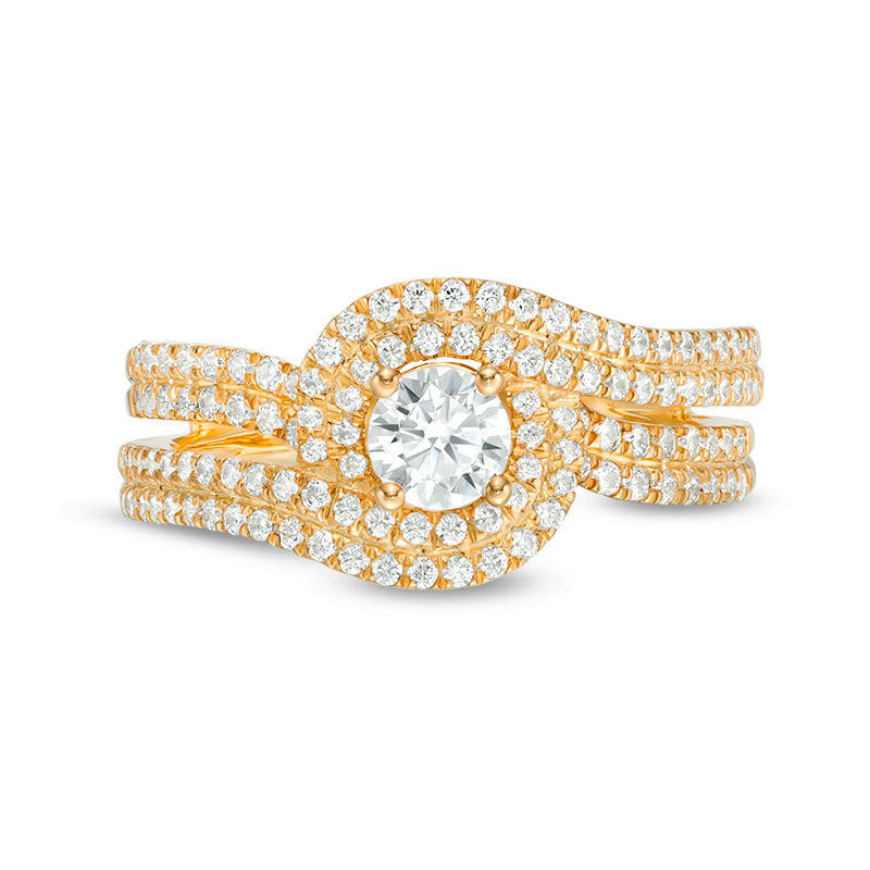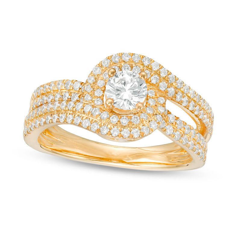 1.0 CT. T.W. Natural Diamond Swirl Bypass Frame Multi-Row Engagement Ring in Solid 14K Gold