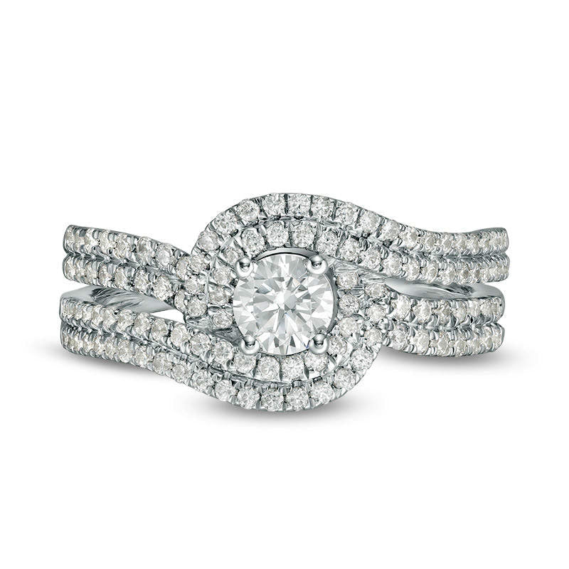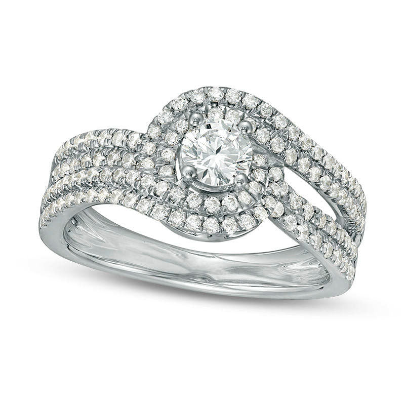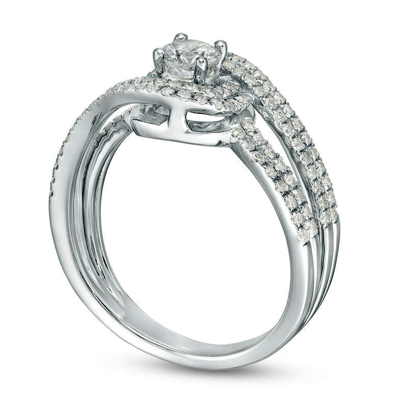 1.0 CT. T.W. Natural Diamond Swirl Bypass Frame Multi-Row Engagement Ring in Solid 14K White Gold