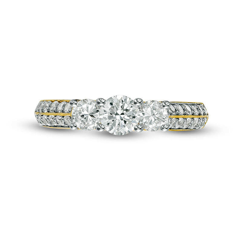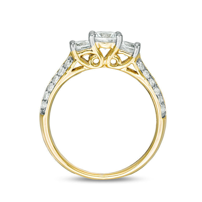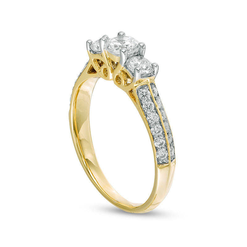 1.0 CT. T.W. Natural Diamond Three Stone Two Row Engagement Ring in Solid 10K Yellow Gold