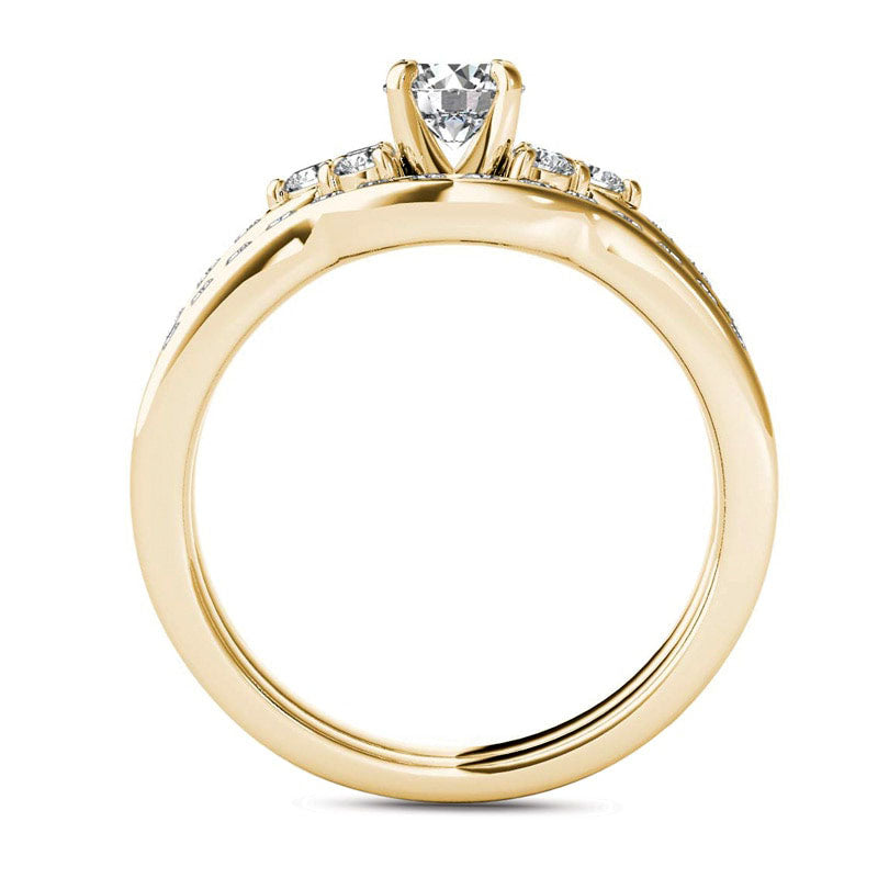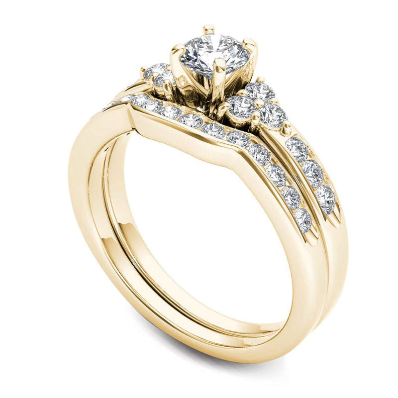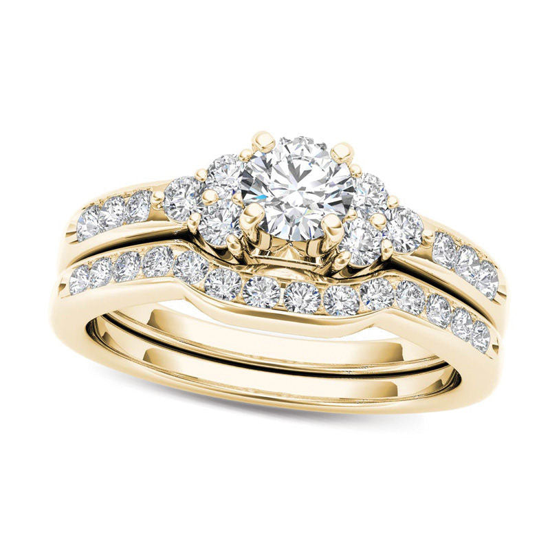 Make her dreams come true with this breathtaking 1 CT. T.W. Diamond Tri-Sides Bridal Set in 14K Gold! Crafted with expert precision, this beautiful set will leave her speechless. The...