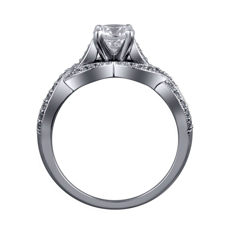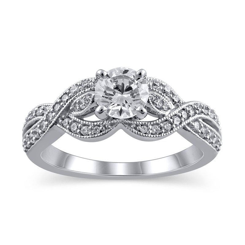 1.0 CT. T.W. Natural Diamond Twist Shank Antique Vintage-Style Engagement Ring in Solid 14K White Gold