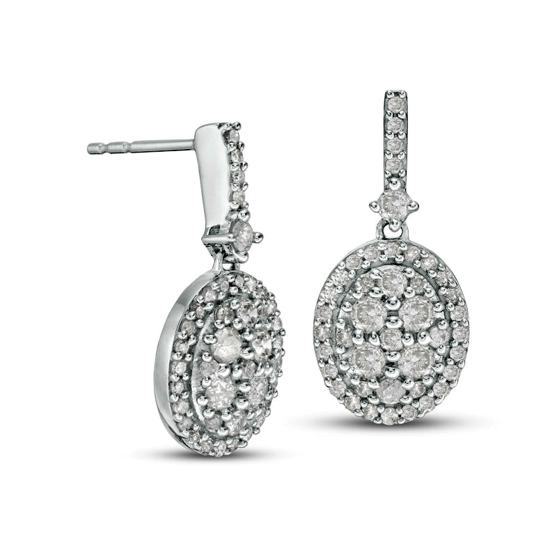 1 CT. T.W. Oval Composite Diamond Frame Drop Earrings in 10K White Gold