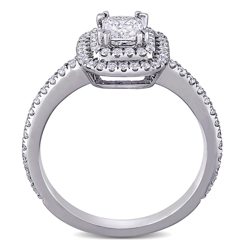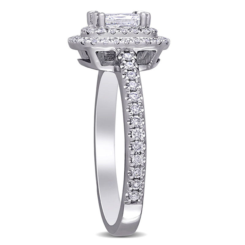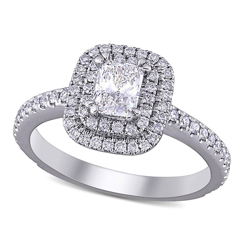 1.0 CT. T.W. Radiant-Cut Natural Diamond Double Frame Engagement Ring in Solid 14K White Gold (H/VS2)