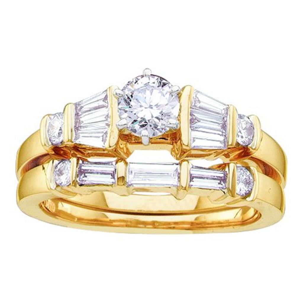 This stunning bridal set is adorned with 1 carat total weight of sparkling diamonds, including a 3/8 carat round diamond as the centerpiece. Crafted from 14kt yellow gold, it has...