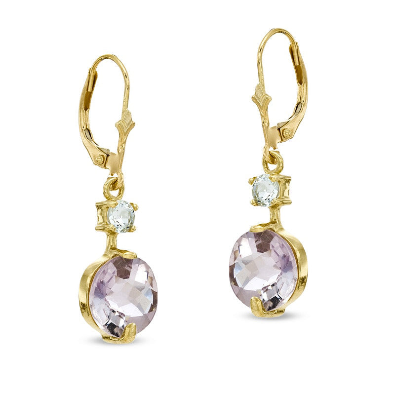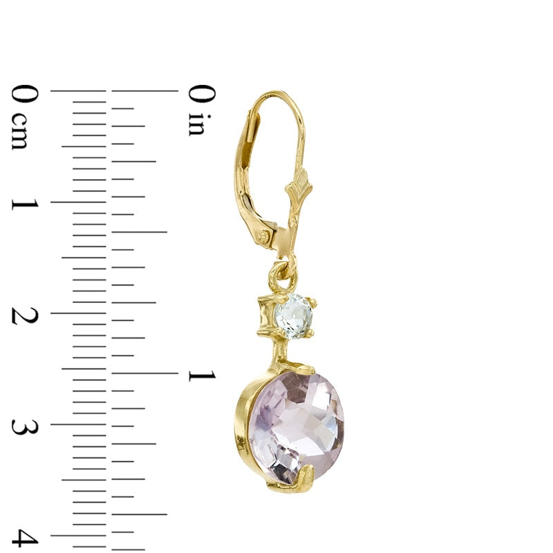 10.0mm Rose de France Quartz and White Topaz Drop Earrings in 10K Gold